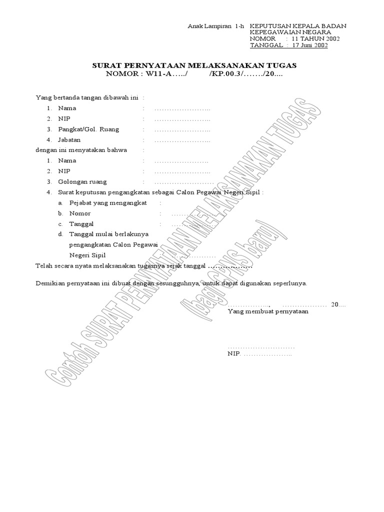 Contoh Surat Pernyataan Melaksanakan Tugas Spmt Mariyadi Com