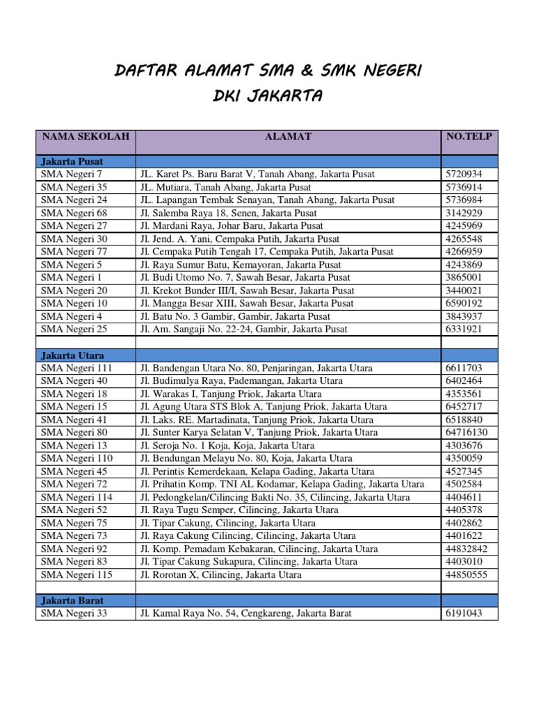 Daftar Sma Smk Kota Jakarta Pusat Info Sekolah Lanjutan
