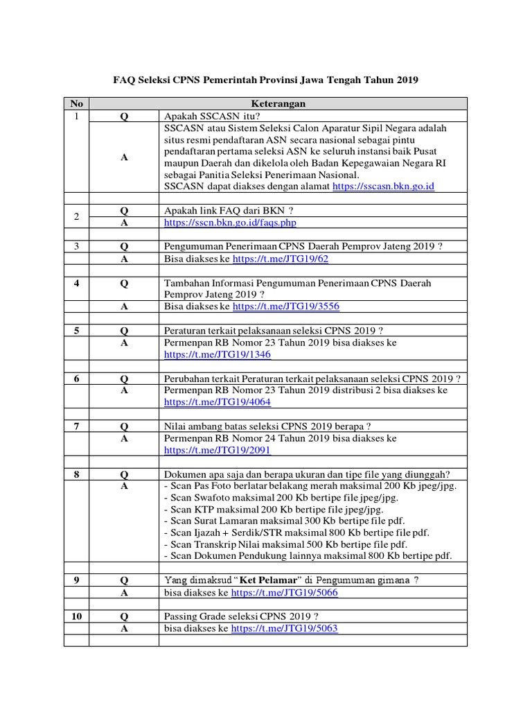 Faq Seleksi Cpns Pemerintah Provinsi Jawa Tengah Tahun 2019 No Keterangan Q