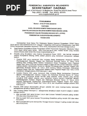 Pengumuman Hasil Seleksi Skd Dan Pelaksanaan Skb Kab Mojokerto Tahun 2018 Pdf