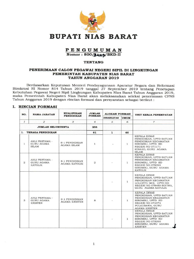 Pengumuman Cpns Kab Nias Barat Tahun 2019