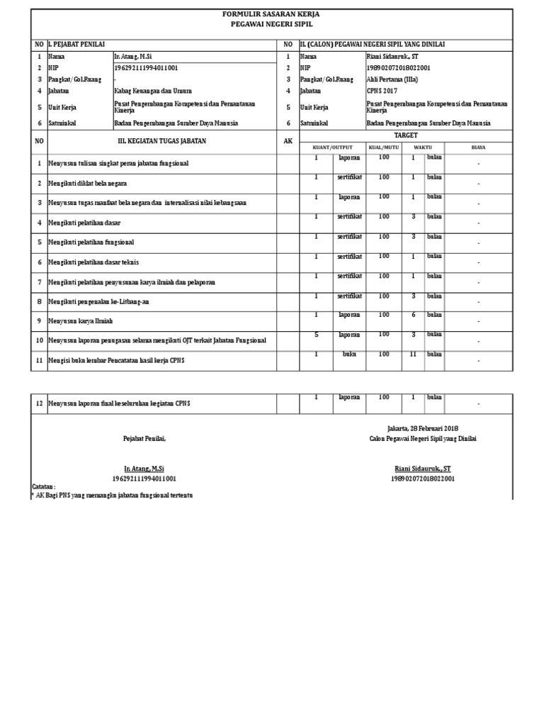 Contoh Pengisian Formulir Sasaran Kerja Pegawai Negeri Sipil Basirin Com