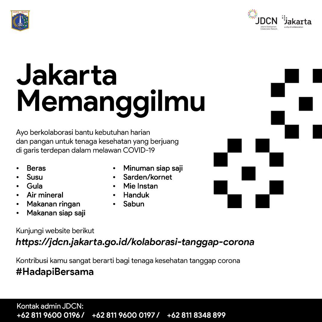 Pemprov Dki Jakarta Pe Twitter Jakarta Memanggil Yuk Ikut Ambil Bagian Menanggulangi Covid 19 Dengan Mendonasikan Kebutuhan Harian Dan Pangan Utk Tenaga Kesehatan Yg Tengah Lawancovid19 Https T Co Ljhbyi770o Jaki